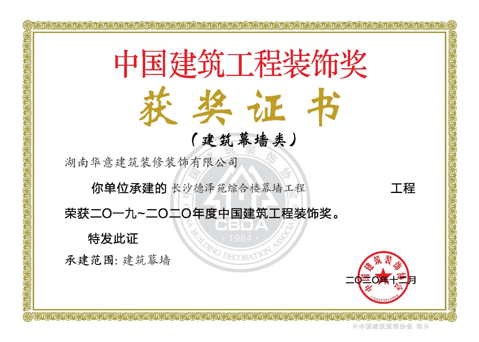 裝飾獎--長沙德澤苑綜合樓幕墻 工程