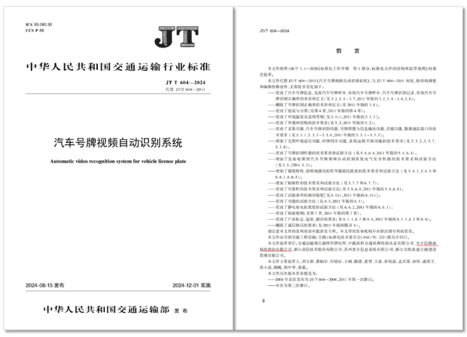 近日,《汽車號牌視頻自動識別系統》行業標準正式公布,標準由全國交通工程設施(公路)標準化技術委員會(SAC / TC 223)提出并歸口,主管部門為交通運輸部,將于2024年12月1日起正式實施。標準起草單位包括交通運輸部公路科學研究所、中路高科交通檢測檢驗認證有限公司、北京信路威科技股份有限公司、浙江高信技術股份有限公司、蘇州思卡信息系統有限公司、浙江交投高速公路建設管理有限公司。
